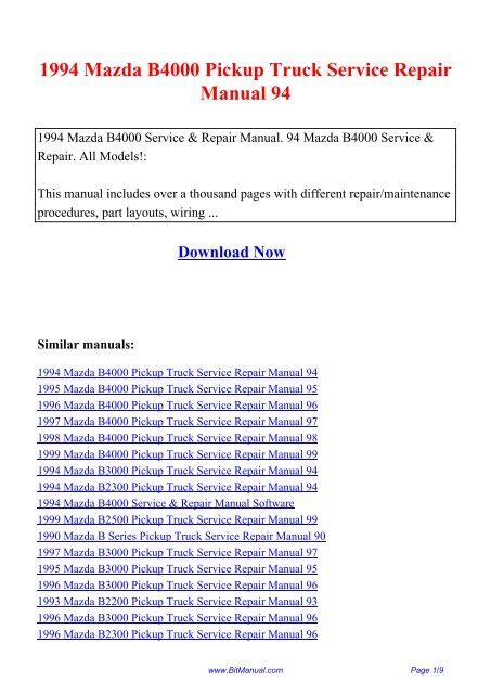 Presently you are looking with regard to an 1994 Mazda B4000 Service Repair Manual Software example that we provide here within some type of document formats like as PDF, Doc, Strength Point, and also images that will make it easier for you to create an 1994 Mazda B4000 Service Repair Manual Software yourself. For a more clear look, you can open a few examples below. Each of the examples about 1994 Mazda B4000 Service Repair Manual Software about this website, we get from a number of sources so you may create a better document of your own.